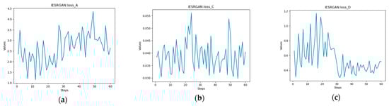 Training loss variation curve. (a) Content loss value; (b) generation loss value; (c) discriminant loss value.