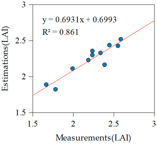 In some studies, better estimation results can be obtained by fusing multi-modal data than using single-modal data. Maimaitijiang et al. [40] estimated soybean yields (R2 = 0.72, RMSE = 0.159) using RGB and multispectral and thermal sensors within the framework of a deep neural network. Zhang et al. [41] used UAV spectral parameters with texture feature data to estimate the LAI of kiwifruit orchard via the stepwise regression method and random forest approach (R2 = 0.947, RMSE = 0.048, nRMSE = 7.99%). Wu et al. [42] used UAV images and spectral, structural, and thermal characteristics of a wheat canopy to estimate the LAI of wheat using the random forest approach and support vector machine regression (R2 = 0.679, RMSE = 1.231).