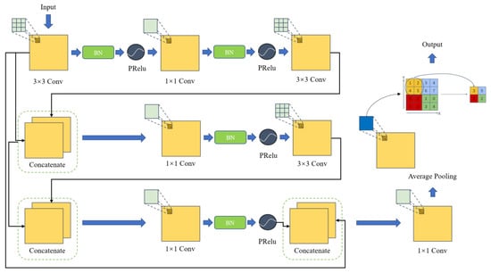 There are three DenseBlocks with the same structure in the network. The structure of each DenseBlock is shown in Figure 7.