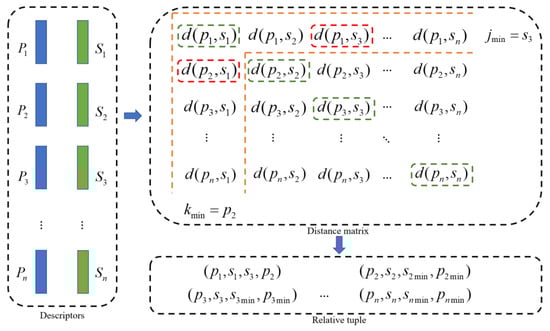 Figure 8 illustrated the computation process of the loss function. The figure consists of three components: namely, descriptors, distance matrix, and relative tuple. In the descriptors section, there are total of matched descriptor pairs. The distance matrix section represents the distance matrix formed by calculating the L2 distances between all descriptors [21]. The relative tuple section consists of the four-tuple collection computed from the distance matrix. This collection is used for the final calculation of the loss function, which is shown below:
