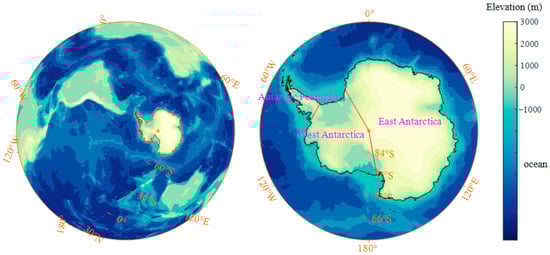 As the most remote region on earth, the Antarctic Ice Sheet is the largest ice sheet on Earth, and has a profound influence on sea levels and is closely coupled to other parts of the climate system [1,2,3,4,5]. Over the past decades, the changes in Antarctic near-surface air temperatures are inhomogeneous, and show different characteristics for the three sub regions of East Antarctica, West Antarctica and the Antarctic Peninsula (Figure 1). The Antarctic Peninsula, a noticeable region, experienced dramatic warming in the second half of the 20th century [6], which is related to the variations in the stratospheric ozone [7], Southern Annular Mode and Amundsen Sea Low [8,9,10,11]. However, the warming signal became weak and even reversed in the last two decades, which was mainly attributable to the natural internal variability [12,13]. West Antarctica has warmed since the 1950s, and the strongest increase occurs in austral winter (June–August) and spring (September–November) [14,15], which may associated with the increase of tropical sea surface temperatures [16,17]. Conversely, East Antarctica showed a cooling tendency in austral autumn (March–May) over the past 60 years, and the widespread cooling is associated with the positive trend in the Southern Annular Mode, the increase in La Niña events and the changes in the strength and position of the mid-latitude jet [8,18,19,20].