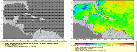 - The Regional NCOM AMSEAS 2D Dataset. Available online: https://www.ncei.noaa.gov/erddap/griddap/NCOM_amseas_latest2d.html (accessed on 22 May 2023).
