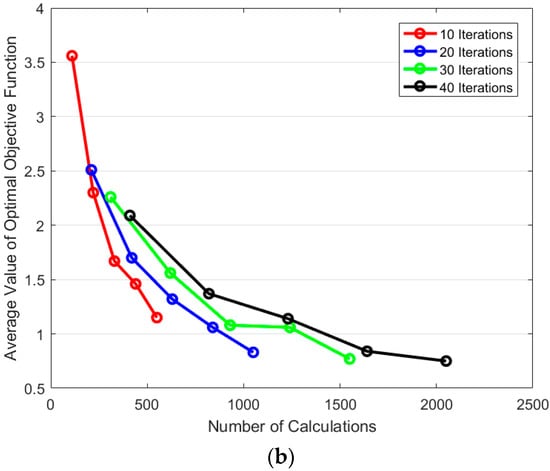 As shown in Figure 19, for PSO or SAPSO, when the number of calculations is the same, fewer iterations provide better optimization results. As the number of calculations increase, the results of the optimized inversion improve, but the change trend gradually slows.