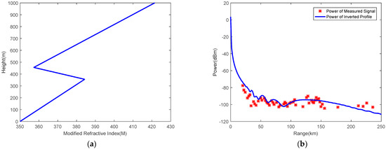 The parameters of the lower atmospheric duct retrieved using the SAPSO algorithm are listed in Table 11. The inversion results in Figure 16 demonstrate that the SAPSO algorithm can retrieve accurate parameters of the lower atmospheric duct.