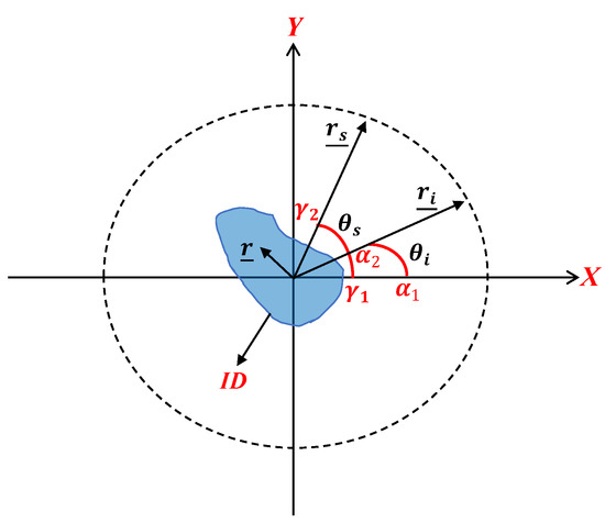 Figure 1 shows the general geometry of the problem in the near field. An unknown scatterer is located in a homogeneous domain referred to as the investigation domain (ID). The position vectors of the scattering object, the source point(transmitter), and the observation point (receiver) are denoted by , and , respectively, where and are constant. The incident field and observations angular domains are supposed to be limited so that and .
