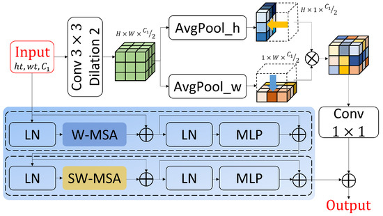 The output feature map Y is then fed into the second Swin Transformer module, denoted as . This module further refines the feature representation by applying self-attention mechanisms and feed-forward networks. The output of is denoted as , where represents the final number of output channels.