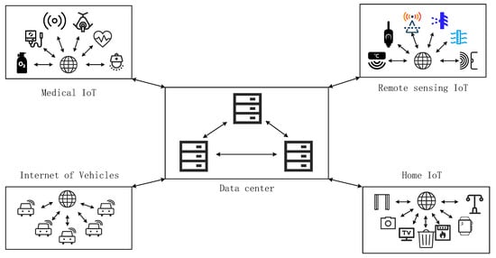 Intrusion detection systems are generally deployed at the entry point in order to detect network intrusions. However, with the development of IoT, more and more networks are structured as shown in Figure 3, which this article refers to as an “IoT domain”. Such IoT domains are increasingly prevalent in industrial IoT systems, such as those used by companies such as Apple, Huawei, and Xiaomi. Most of the devices in an IoT domain are monitored by a central server, which can obtain information about the status of the nodes. This situation is similar to a ground-based remote sensing system based on the IoT. As the situation, where certain nodes within a domain are controlled to attack other nodes, becomes more and more common, intrusion detection systems need to be deployed at the exit points of the domain to detect attacks on nodes.
