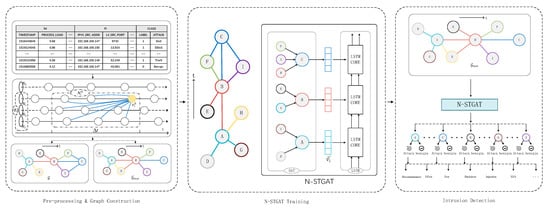 To solve the aforementioned issues, this article proposes the N-STGAT network intrusion detection system. As the goal of this article is to solve network intrusion detection problems in time series, a spatiotemporal graph neural network combining GAT and LSTM is used, which has good performance in identifying data flows with spatiotemporal sequences.