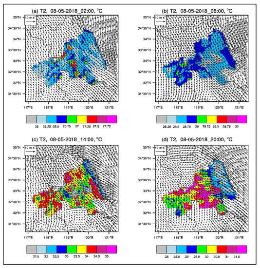 Simulation diagram of 2 m temperature on the hottest day in summer in the ESLZ based on the reference scheme.