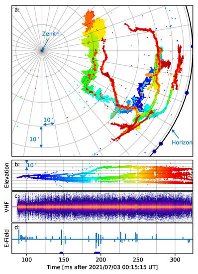 - Hartman, J.M.; Sonnenfeld, R.; Rison, B. High-time-resolution imaging of lightning with the Long Wavelength Array. Bull. Am. Phys. Soc. 2012, 57, 11. [Google Scholar]