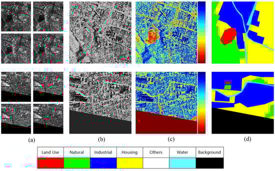 The FUSAR-MAP [30] dataset consists of 610 optical and single-polarization SAR images of 1024 × 1024 pixels. The SAR images are provided by the GF-3 satellite, which operates in C-band ultra-fine strip (UFS) mode, with a nominal resolution of 3 m, and the polarization mode is HH. Four types of land cover are considered, and others are regarded as background.