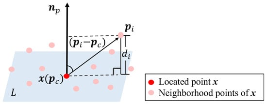 where the distance from a neighborhood point to the plane L is equal to the projection of on the normal vector , denoted as: