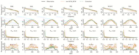 3.1. Evaluation of Corrected Precipitation and Temperature