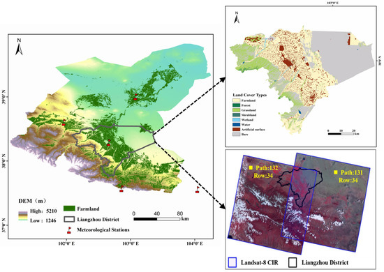 Study area of the Liangzhou District (LD). The LD is mosaicked by 2 Landsat-8 images.