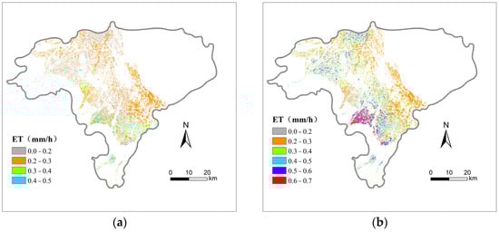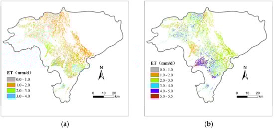ET itself is affected by a variety of factors, such as crop type, crop growing conditions, soil conditions, and climate. However, changes in ET are mainly determined by climate, land use, and land cover change [10]. Regarding the driving mechanism of crop ET, the impact of climate and vegetation changes on ET has been a hot topic in the process of the terrestrial hydrological cycle [11,12,13,14]. Jin et al. [15] used the ET model to separate the effects of vegetation restoration and climate change on ET by controlling variables and found that vegetation restoration was the main driver of ET increase; He et al. [16] analyzed precipitation, potential ET, and ET based on the Budyko equation. They found that based on the average impact of vegetation restoration on ET changes, precipitation was the main driving factor for the ET changes. ET estimation and the hydrological models used by the above scholars can effectively evaluate the impact of climate and vegetation changes on ET changes. Still, there exist few studies on the effects of crop planting structure changes on ET under the broken and complex planting structure.