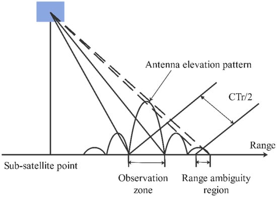 To avoid range ambiguity, scene echoes two pulses of antenna transmission need to be fully received by the system, and the PRF must be low enough so that all near-to-far echo signals within the range of the SAR antenna beam are in the receiving window. In this case, the PRF should satisfy the following condition: