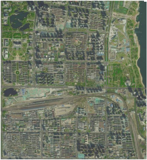 Rizhao, Shandong Province, China, is selected as the study area, which is a large-scale urban area containing typical urban forms, as shown in Figure 8. The longitude and latitude range of the experimental area is 119.518°~119.569°E and 35.383°~35.431°N, respectively.