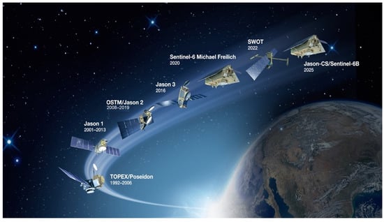 - Cazenave, A. Satellite Altimetry. In Encyclopedia of Ocean Sciences, 3rd ed.; Cochran, J.K., Bokuniewicz, H.J., Yager, P.L., Eds.; Academic Press: San Diego, CA, USA, 2019; pp. 397–401. [Google Scholar] [CrossRef]