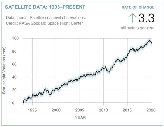 - Nerem, R.S.; Fasullo, J. Observations of the Rate and Acceleration of Global Mean Sea Level Change. Bull. Amer. Meteor. Soc. 2019, 100, S15–S18. [Google Scholar] [CrossRef]