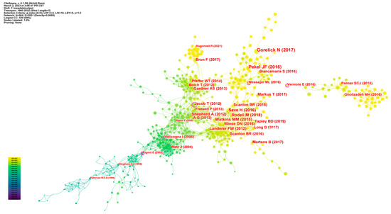 One potential limitation of this study is that different analysis software and different settings will lead to differences in results. However, as far as the current comparative studies are concerned, the two software packages have been verified many times by different researchers, and the results are considered credible. Pan et al., in their comparison of bibliometric software analysis, showed that most researchers using bibliometric software do not provide sufficient usage information, which is not conducive to the reader’s reproduction of the processing flow and results [20]. Therefore, in this article, under the condition of ensuring accuracy, we have displayed graphical information based on the principle of clear graphical display and as many nodes as possible. The network set by CiteSpace was sliced over a period of 3 years, and the first 10 nodes of each slice were selected to prepare for display. We adjusted the g-index value to actually control the number of nodes to be displayed; the author cooperation network shows a total of 996 nodes, and the document co-citation network displays a total of 904 nodes. Other relevant settings are reflected in the figure name. A small difference in results is allowed, and differences introduced by different settings do not mean errors. We should also take these differences into account when drawing conclusions.