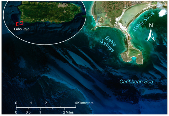 The Cabo Rojo peninsula is situated on the southwest coast of Puerto Rico, between the Bahia Salinas to the west, the Caribbean Sea to the south, and Bahia Sucia to the east (Figure 2).