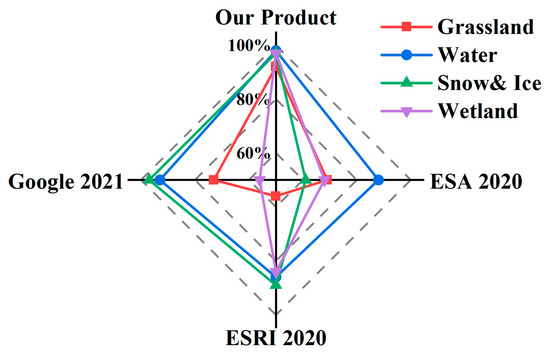3.5. Comparison with Existing Land-Use Products