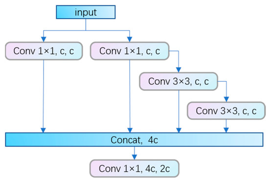 ELAN block. Conv 1 × 1, c, c means the input channel number is c and the output channel number is c.