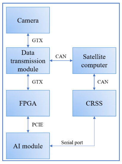 On-board simulation system. GTX means Gigabit Transceiver, CAN means Controller Area Network, and FPGA means Field Programmable Gate Array. PCIE means Peripheral Component Interconnect Express. CRSS means Command Receiving and Sending System. AI module means Artificial Intelligence module.