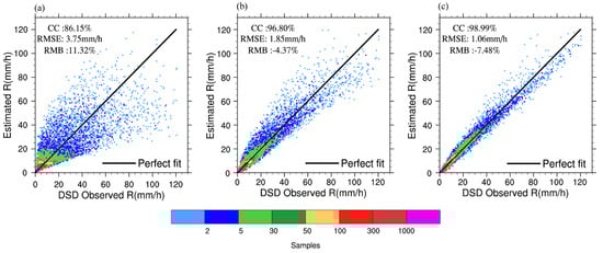 | Control experiment | Perform R(Kdp) to estimate rain rate using all the DSD data with parameters for the whole region of Beijing (i.e., a = 15.83 and b = 0.7727) |