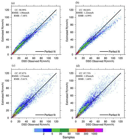 - Zhang, G.; Vivekanandan, J.; Brandes, E. A method for estimating rain rate and drop size distribution from polarimetric radar measurements. IEEE Trans. Geosci. Remote Sens. 2001, 39, 830–841. [Google Scholar] [CrossRef]