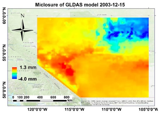 Map of misclosures of the GLDAS TWSA in Alberta on 15 December 2003.