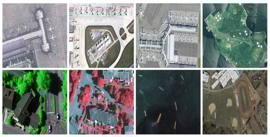 To assess the generalization capability of our proposed method, we conducted experiments on the NWPU VHR-10 dataset. This dataset is specifically designed for geospatial object detection and comprises ten different object categories, namely airplane, ship, storage tank, baseball diamond, tennis court, basketball court, ground track field, harbor, bridge, and vehicle. In our study, we randomly divided the dataset into three sets: 60% of the images were allocated to the training set, 20% to the validation set, and the remaining 20% to the testing set. Figure 8 showcases a selection of unprocessed images from the NWPU VHR-10 dataset. For our experiments, we employed three sets of anchor dimensions: (24,23, 30,30, 32,46), (47,32, 52,51, 74,61), and (88,96, 205,104, 150,194).