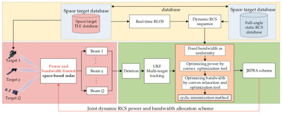 Bayesian theory points out that prior information can improve the accuracy of parameter estimation. Inspired by this, we can model the on-orbit space target and obtain its full-angle static RCS database and orbit information, which can be introduced into the resource allocation framework as a priori information to solve the above problems. In this paper, we propose an adaptive joint dynamic RCS power and bandwidth allocation (JRPBA) method for multiple space target tracking via space-based radar. The main contributions of the paper are given as follows.
