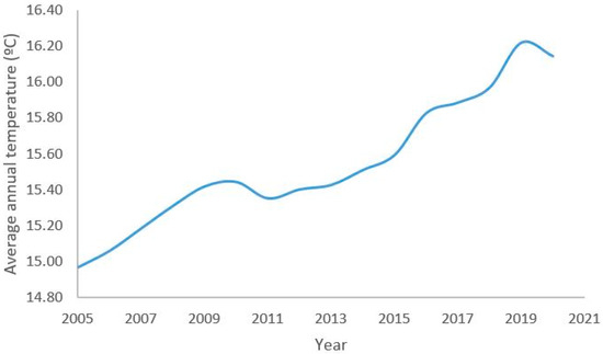 However, in the second period under study (2020–2016 period), for which RAMALL aridity index values were lower than 1, the progressive increase in the average annual temperature (