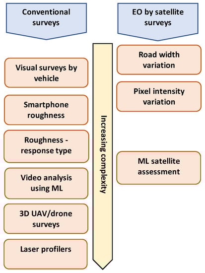 - TRL. The Use of Appropriate High-Tech Solutions for Road Network and Condition Analysis, with a Focus on Satellite Imagery; Final Report: 2018; ReCAP for DFID: London, UK, 2018. [Google Scholar]