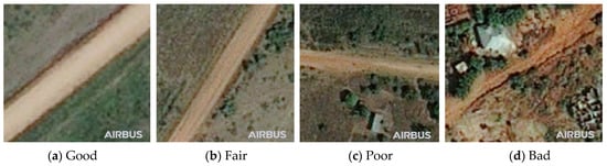 - Cadamuro, G.; Muhebwa, A.; Taneja, J. Assigning a Grade: Accurate Measurement of Road Quality Using Satellite Imagery. arXiv 2018, arXiv:1812.01699. [Google Scholar]