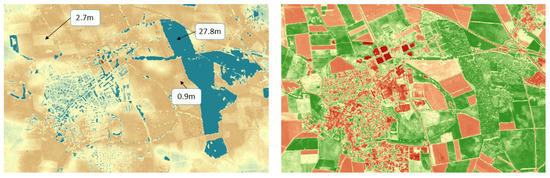 Automatically generated nDSM_1 (left) and the respective NDVI image (right). on 10 August 2020, of the target area.