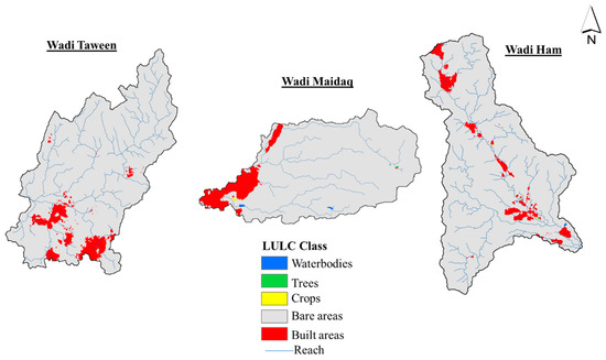 Land use and land cover type for the three wadis derived from ESA Sentinel 2 imagery and reclassified based on ground observation and google earth imagery.