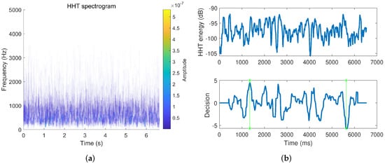 (a) HHT spectrogram; (b) Endpoint detection results from the HHT spectrogram.