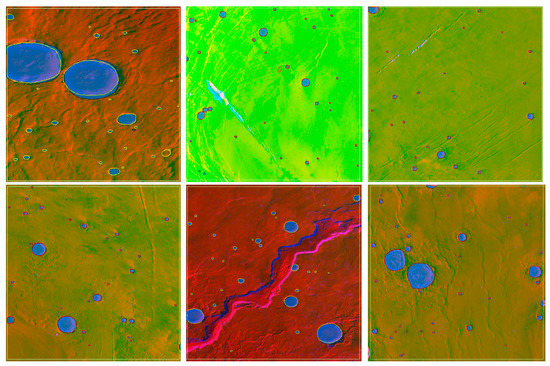- Bue, B.D.; Stepinski, T.F. Machine Detection of Martian Impact Craters from Digital Topography Data. IEEE Trans. Geosci. Remote Sens. 2007, 45, 265–274. [Google Scholar] [CrossRef]