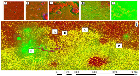 - Robbins, S.J.; Hynek, B.M. A new global database of Mars impact craters ≥ 1 km: 1. Database creation, properties, and parameters. J. Geophys. Res.-Planet. 2012, 117, E05004. [Google Scholar] [CrossRef]