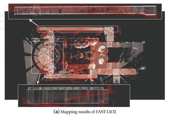 - Xu, W.; Cai, Y.; He, D.; Lin, J.; Zhang, F. FAST-LIO2: Fast Direct LiDAR-Inertial Odometry. IEEE Trans. Robot. (TRO) 2022, 38, 2053–2073. [Google Scholar] [CrossRef]