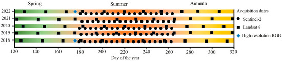- Tarantino, C.; Forte, L.; Blonda, P.; Vicario, S.; Tomaselli, V.; Beierkuhnlein, C.; Adamo, M. Intra-annual sentinel-2 time-series supporting grassland habitat discrimination. Remote Sens. 2021, 13, 277. [Google Scholar] [CrossRef]