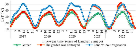 3.5. Investigating the Effect of the Garden Destruction on the LST