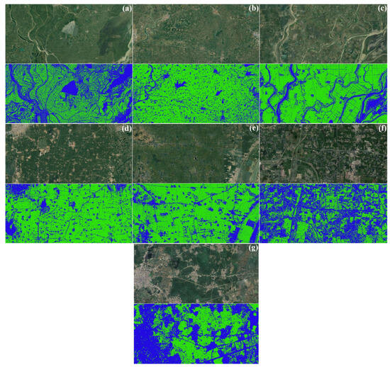 An in-depth understanding of rice phenology is a non-negligible prerequisite for deciphering the extent of rice cultivation. Although the phenological characteristics exhibited by rice at different growth stages can vary according to geographical environment in which the rice is grown, the genetically determined characteristics of a species cause the growth stages of rice in different locations to follow certain patterns [6,7,8]. On the other hand, among all food crops, rice is the only one that requires a substantial amount of water at the growth stage, while transplanting is needed [9,10]; therefore, it has become critical to identify rice fields from satellite images enriched with multiple ground objects by examining the dynamic evolution of water–land–vegetation components during an entire growth cycle based on the physiological characteristics of rice during different growth stages.
