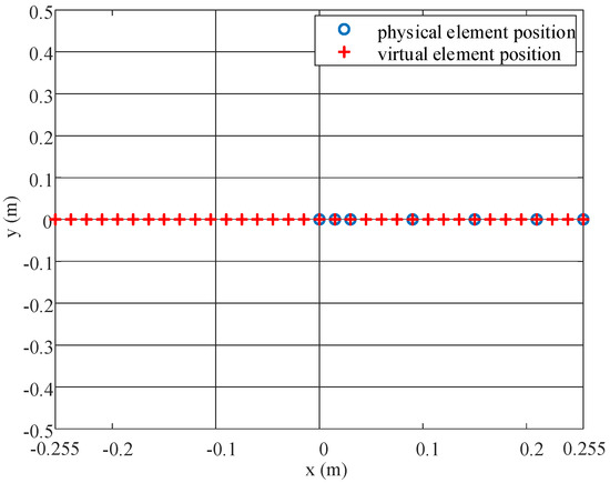 Figure 6 illustrates the distribution of element locations for a 7-element MRA and a virtual ULA. As illustrated, the physical elements form a sparse array, and a virtual ULA with a greater number of elements than the physical array is obtained through difference co-array processing.