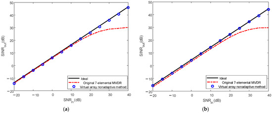 Output SINR versus input SNR. (a) . (b) .