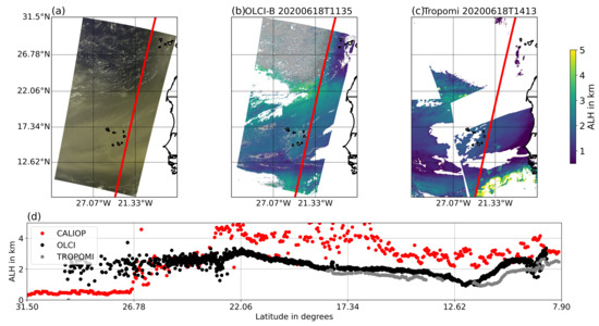 - Nanda, S.; de Graaf, M.; Veefkind, J.P.; Sneep, M.; ter Linden, M.; Sun, J.; Levelt, P.F. A first comparison of TROPOMI aerosol layer height (ALH) to CALIOP data. Atmos. Meas. Tech. 2020, 13, 3043–3059. [Google Scholar] [CrossRef]