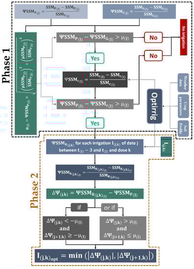 | SSM simulated by Optirrig through the injection of I(j,k) (irrigation of date j between t(l) and t(i) and dose k) | |
