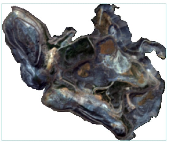 Sentinel-2 remote sensing images that have been radiometrically calibrated, geometrically corrected, and atmospherically corrected were downloaded from the ESA website. The remote sensing image contained the mining area of this study. The nearest-neighbor method was used to resample all the bands, and band fusion was performed to obtain color remote sensing images with a resolution of 10 m. Then, the remote sensing image was cropped to obtain the remote sensing image of the study area. The final remote sensing image obtained is shown in Figure 4.